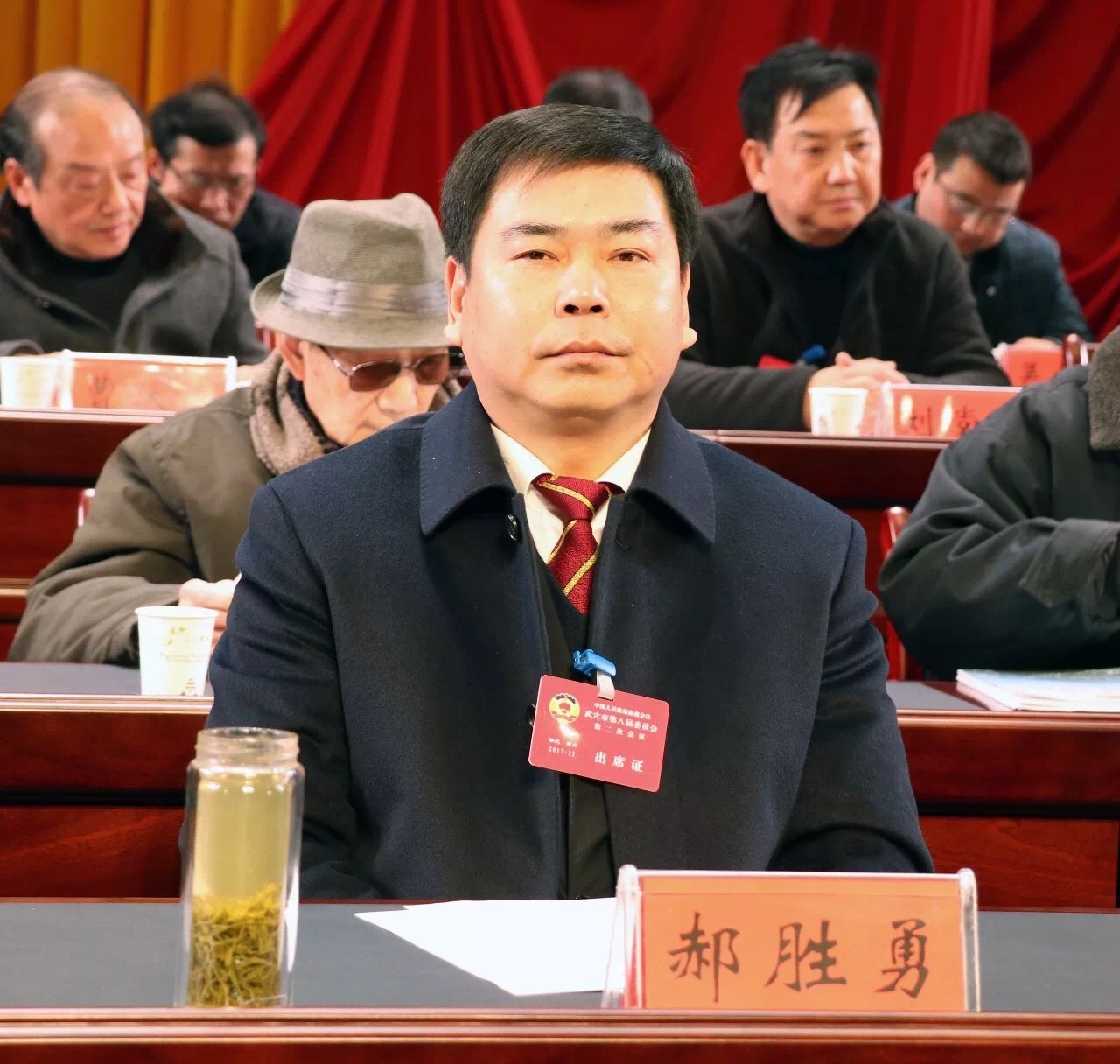 政协武穴市八届委员会主席会议成员郭茂兰、向华珍、苏新中、王卫平、张建平、毛永超、郭友德在主席台前排就座,在主席台就座的还有郝胜勇、李新桥、刘斌、郑勇平、金晓耕、雷洪、蔡军、高维鹏、吴怀高、吴愿明、徐平权、李俊东等市委、市人大、市政府领导、法院、检察院主要领导、人武部领导、湿地公园、武穴师范领导、梅川镇党委、开发区主要领导、市在职副处级以上领导、退休正处级以上老领导以及政协常委会全体组成人员。
